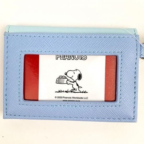 SNOOPY スヌーピー 二つ折りパスケース BL レインボースヌーピー パスケース 定期入れ リール付きパスケース 青 グッズ (MCOR)