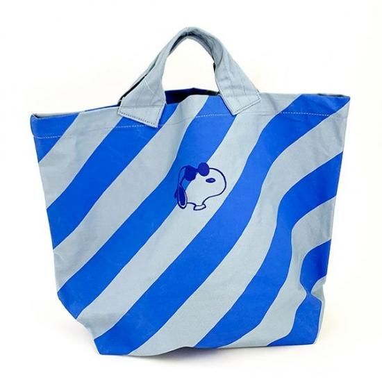 スヌーピー ジョークール デリ ミディアム ストライプ ブルー バッグ トートバッグ マザーバッグ