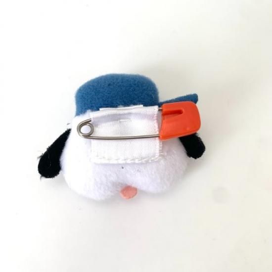 小さなぬいぐるみがバッチになってます。