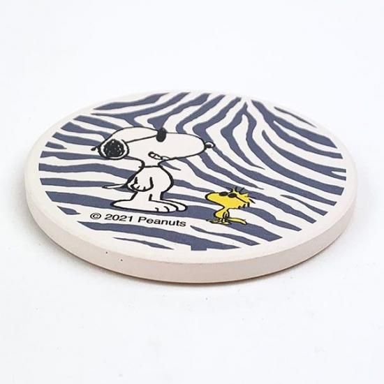 スヌーピー 陶器製 吸水コースター ゼブラ しまうま アニマルモチーフ 直径9cm 素焼き 裏面コルク 食器