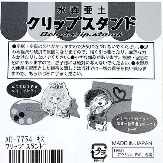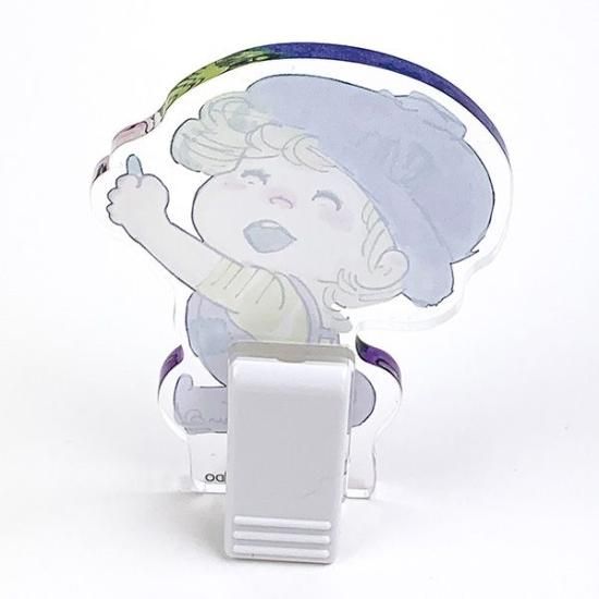 亜土ちゃんのオシャレで可愛いデザインのアクリルクリップです♪立ててスタンドのように使えるので、メモ、絵葉書などを立ててインテリアとしても活躍します☆
