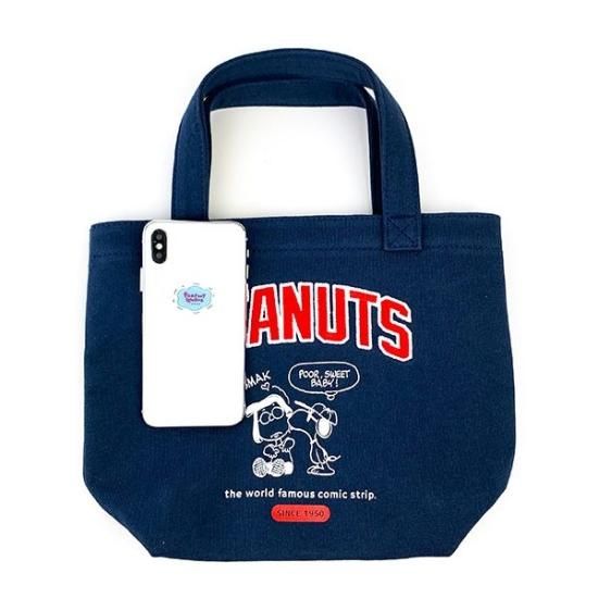 スヌーピー ファスナー ミニトート ネイビー スウェット ロゴ バッグ ランチトート キッチン 学校 オフィス
