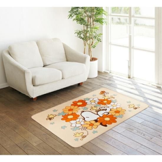 スヌーピー 花いっぱい ラグマット 【130×180cm】 インテリア SNOOPY