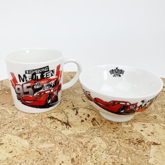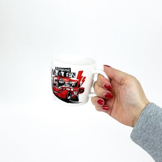 マックィーンが大きく描かれているかっこいいジュニアサイズのマグカップ!だいすきなキャラクターなら、ごはんの時間も楽しくなりそう♪電子レンジ・食洗器使用可◎