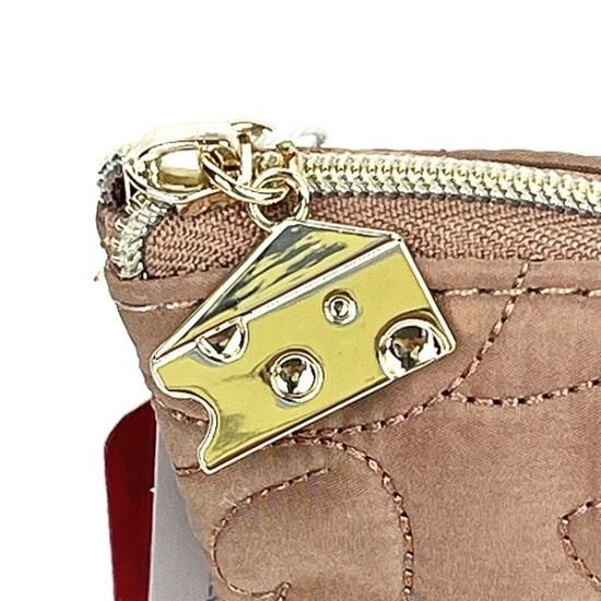 フェイス型のキルティング生地は隠れキャラクターのようなデザイン♪ファスナーの持ち手はかわいいチーズ型!マチがしっかりとあるので、容量も抜群です◎