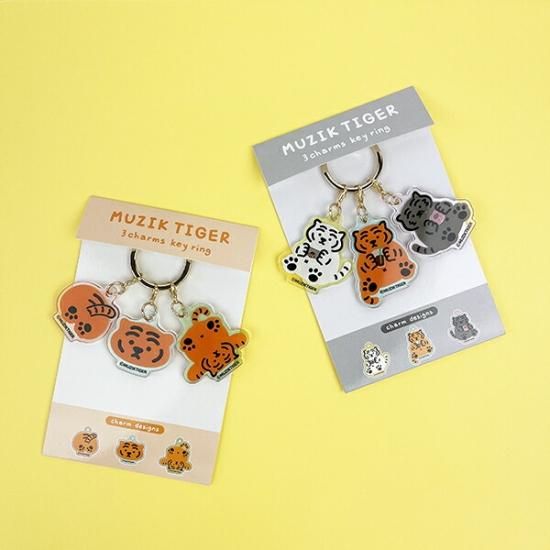 韓国・ソウルで誕生したイラストレーションブランド「MUZIK TIGER(ムジークタイガー)」!!!「無敵の虎」という意味をつけたブランド名で、ポップなタイガーのアイテムがSNSを中心に人気を集めているキャラクターです。可愛い3チャームキーホルダー☆