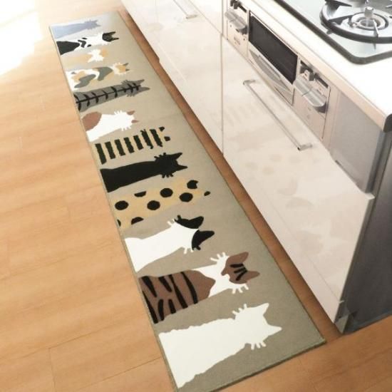 ミーサのキッチンマットです。滑り止め付きでおしゃれなデザインが◎洗濯・掃除機可。床暖房対応です。