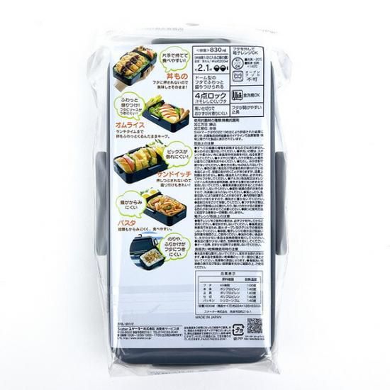 トムとジェリーのお弁当箱。ドーム型のフタで、"ふんわり"とご飯やおかずが詰められる。高い仕切付きでおかずが片寄りにくく、片手で持てるスリムタイプ。4点ロックの密封式で汁漏れしにくいから安心。食洗機・フタを外して電子レンジ使用可◎【商品サイズ(約):224×128×63mm】【容量:830ml】