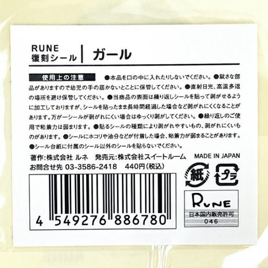 内藤ルネ ピンク髪ガール 復刻シール 文具 RUNE