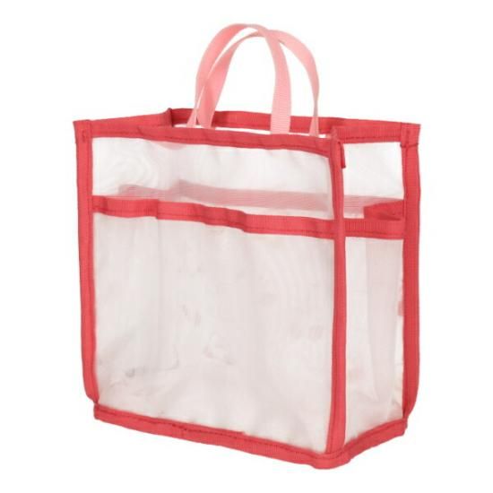 中身が見えるメッシュ素材のバッグインバッグです。4つのポケット付きで、スマホや財布などの収納にもぴったり。