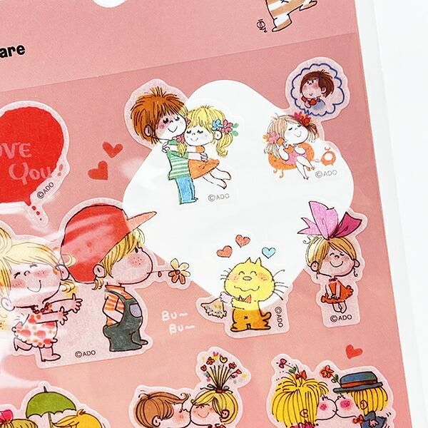 水森亜土の可愛らしいカップルデザインがキュートなマスキング素材のシールです。貼ってはがせるのでスマホやノートなどのデコレーションにも◎どのデザインも可愛すぎて亜土ちゃん好きにはたまりません!シール帳に貼ってコレクションするのもおすすめです☆彡