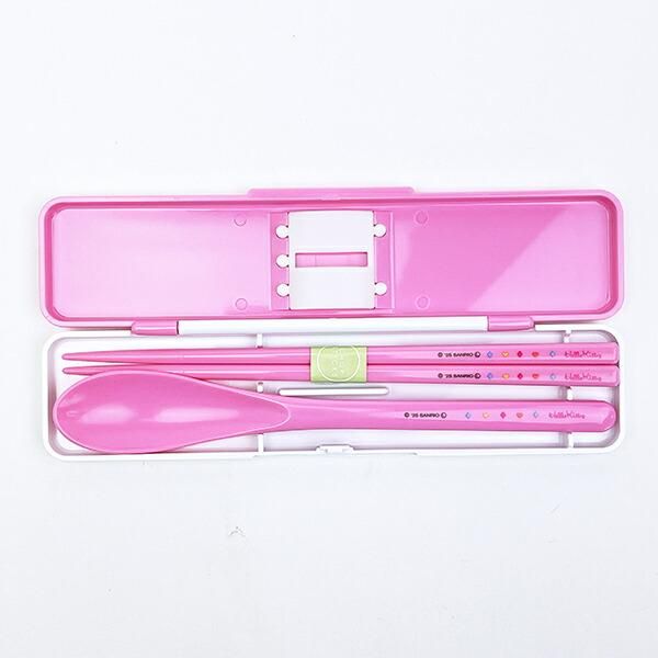 カオハナシリーズの抗菌コンビセットです。クッションがしっかり箸を押さえ、上下左右に揺れないのでカチャカチャ音がなりません!大きいツマミで開けやすいフタ使用♪同シリーズでお弁当箱や箸セットなどあるのでキティちゃんが好きなお子様の遠足に揃えてみませんか♪食洗機・乾燥機使用可◎【箸・スプーン長さ:18cm】